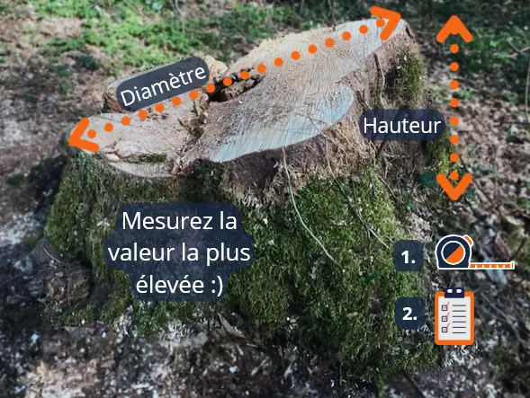 Si le client n’est pas présent sur les lieux, ni joignable par téléphone, notre équipe prendra une photo de la souche avec un repère gradué.