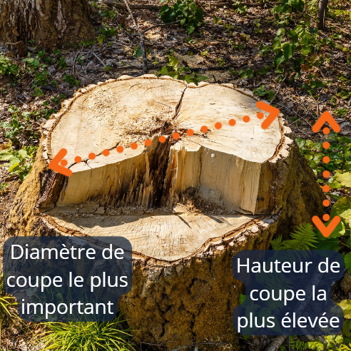 Diamètre : Mesurez les coupes à l’endroit le plus large, d’un tronc à l’autre.